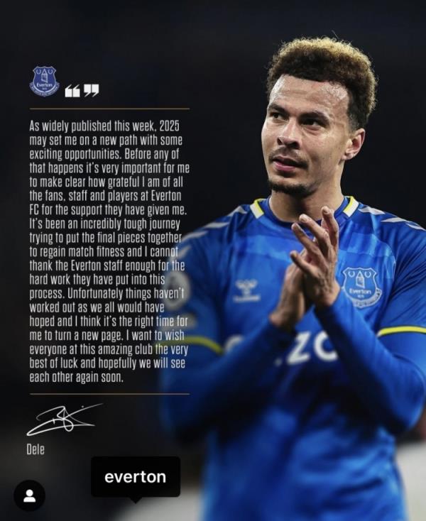 阿里寫道:“正如本周大家廣泛談?wù)摰哪菢樱?025年我可能會(huì)走上一條新的道路,因?yàn)橛幸恍┝钊烁械脚d奮的的機(jī)會(huì)。在這一切發(fā)生之前,我必須要先明確的表達(dá)一下我對于所有球迷的感激之情,以及埃弗頓所有工作人員以及球員對我的支持。