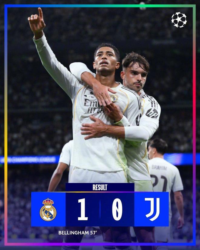 比賽進(jìn)行到第57分鐘,維尼修斯在禁區(qū)左路連續(xù)閃轉(zhuǎn)騰挪后晃開(kāi)角度起腳勁射,皮球擊中遠(yuǎn)端立柱彈出,貝林厄姆跟上補(bǔ)射破門(mén),皇馬在場(chǎng)上1-0取得領(lǐng)先。1-0的比分保持到了終場(chǎng),尤文圖斯遭遇各項(xiàng)賽事7場(chǎng)不勝。